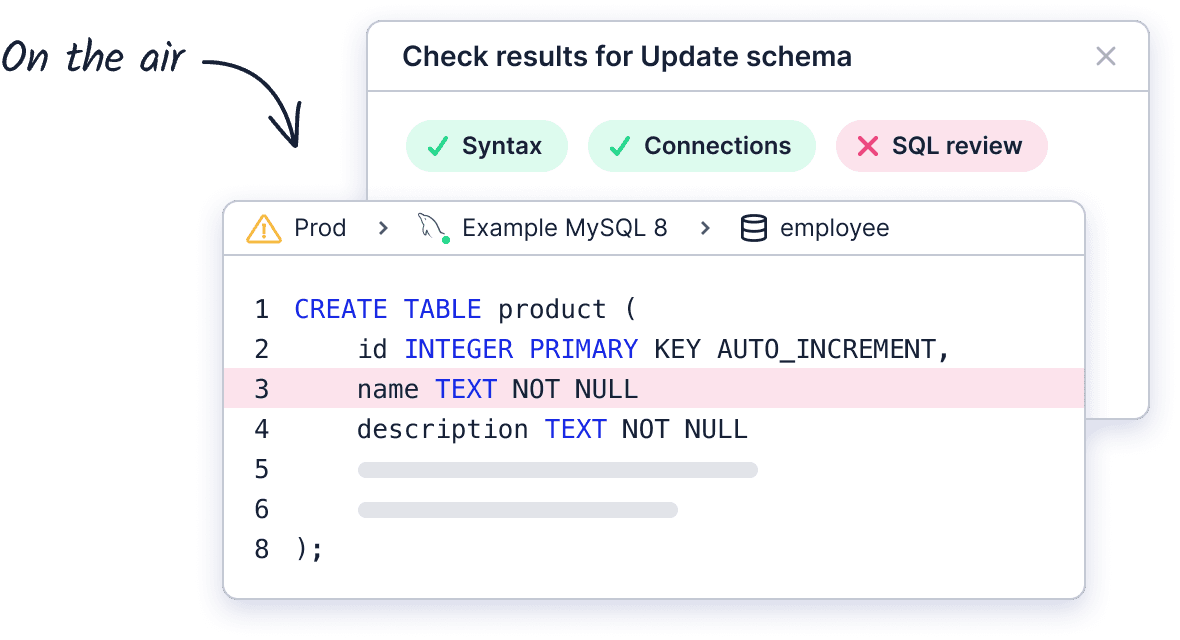 Standardized database schema migrations and data changes with review, linting, and GitOps.