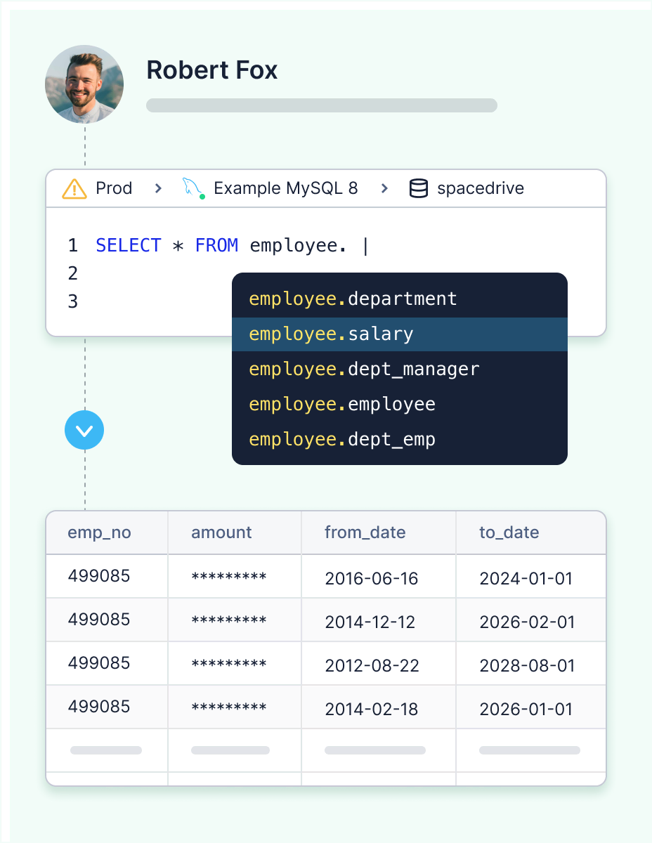Query with auto-completeJust-in-time data accessMask data on the flyRecord audit logs